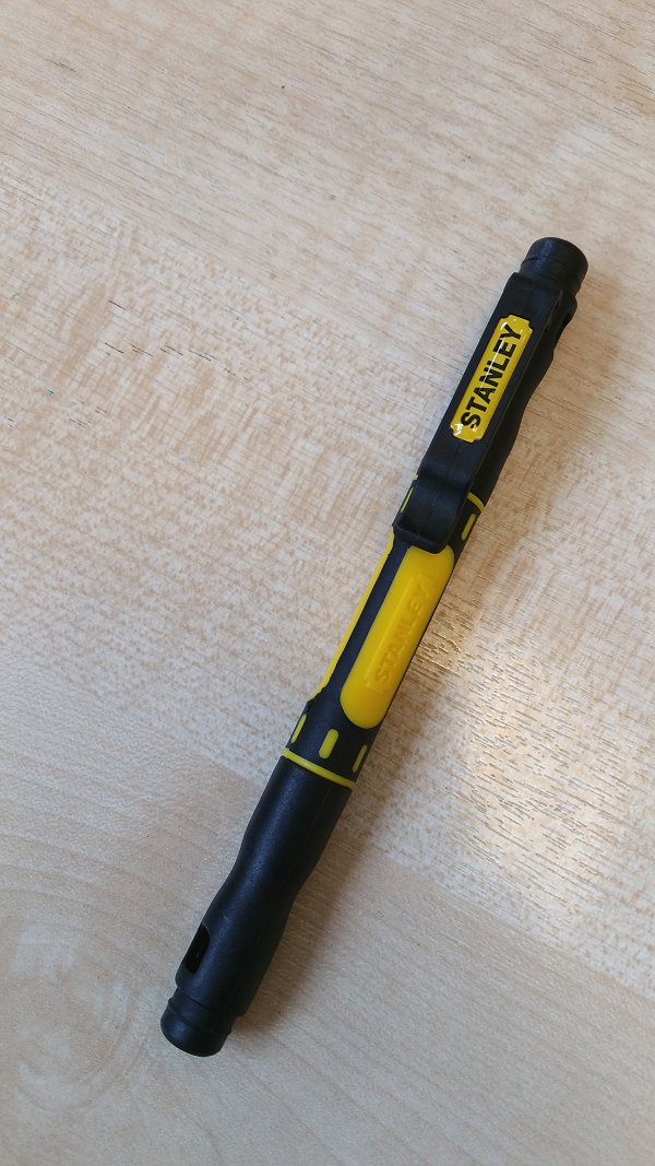 I have just added this useful, lightweight Stanley 66-344M 4-in-1 Pocket Screwdriver to my EDC as it gives four different bits in a handy pen-like format and it’s great value as well! the bits are organised into a large and small. The large has a P1 posi bit at one end with a 5/32 flat bit at the other and the small bit has a P0 posi with a 1.8 flat at the other end. It’s not a fantastic bit range but it should suit its purpose satisfactorily.