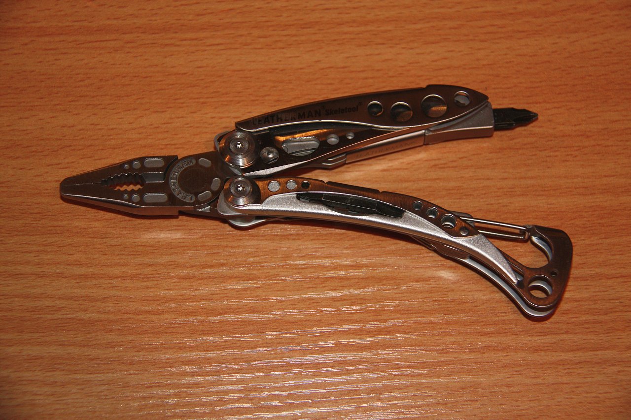- Multitool: A Leatherman Skeletool CX. This is a large but quite lightweight multitool which forgoes a number of common tools to just give me a decent blade and plier combo. The sacrificed tools from other multi-tools are well covered with other elements of the EDC load.